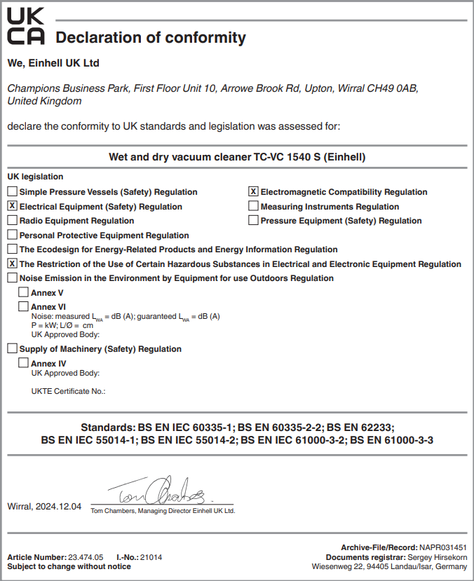 Einhell 15L 900W Wet & Dry Vacuum Cleaner 230V