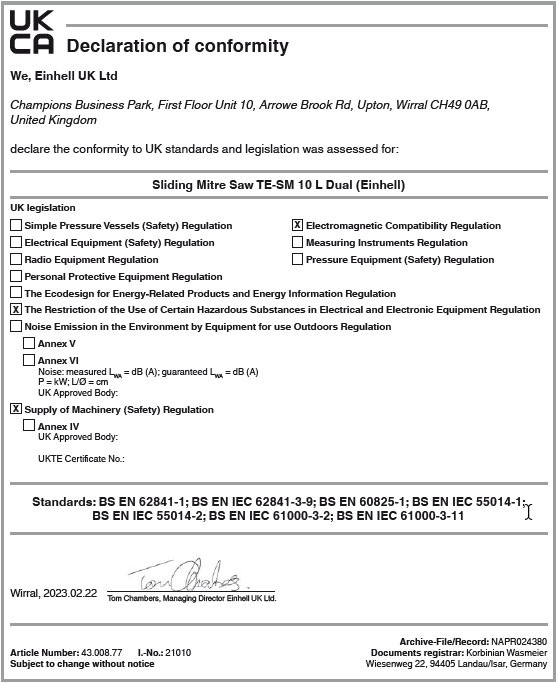 Einhell 2100W 254mm Double Bevel Sliding Mitre Saw 240V