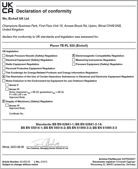 Einhell 920W 82mm Planer 230V