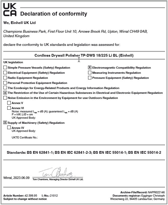 Einhell Professional PXC 18V Brushless Compact Drywall Polisher 225mm Body Only