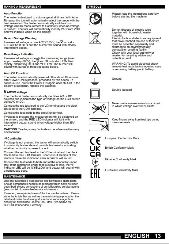 Milwaukee 2212-20 Auto Voltage / Continuity Tester