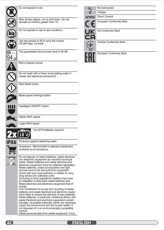 | Pack contents | 1 x Milwaukee M18F2LM46-0 FUEL™ Dual Battery Self-Propelled 46cm Lawn Mower |