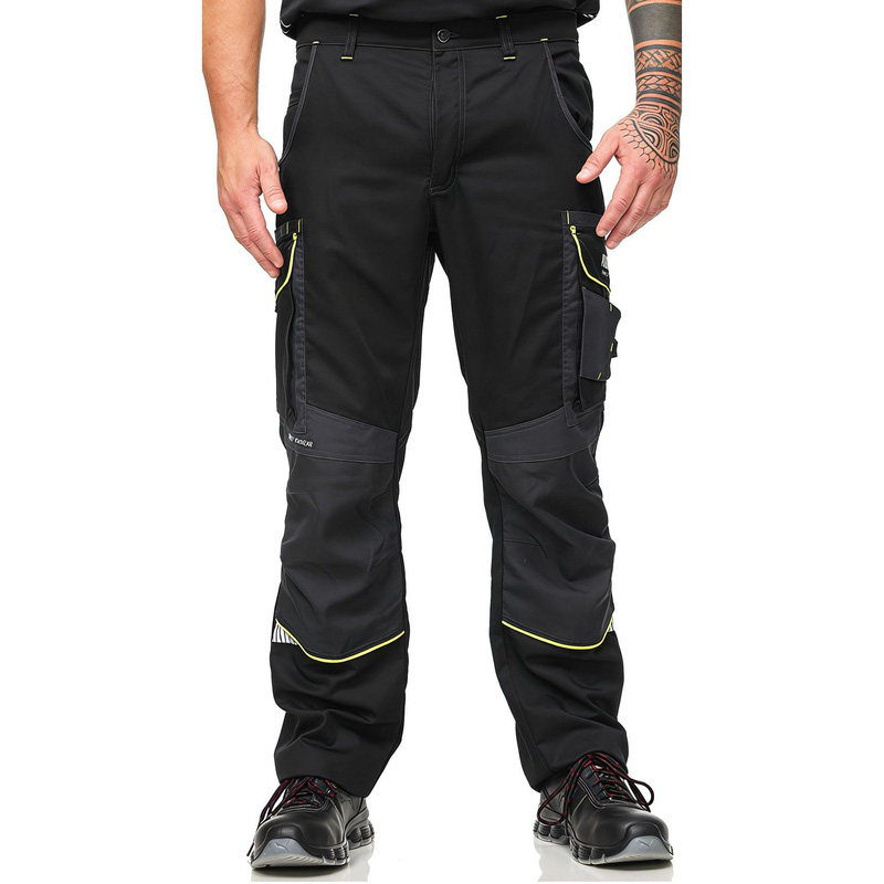 The trousers are made from a blended fabric with high tear resistance and durability. You’ll benefit from the temperature-regulating properties of polyester and the natural wear comfort of cotton. The work pants also enable maximum freedom of movement during all work activities and are suitable for a wide range of areas such as handiwork, construction work and agriculture.