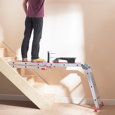 Use it as a step ladder, extension ladder, stairwell ladder, level platform or stair platform, as well as other configurations. It offers a maximum extended length of 3.39m as an extended ladder, and a top platform height of 0.89m.